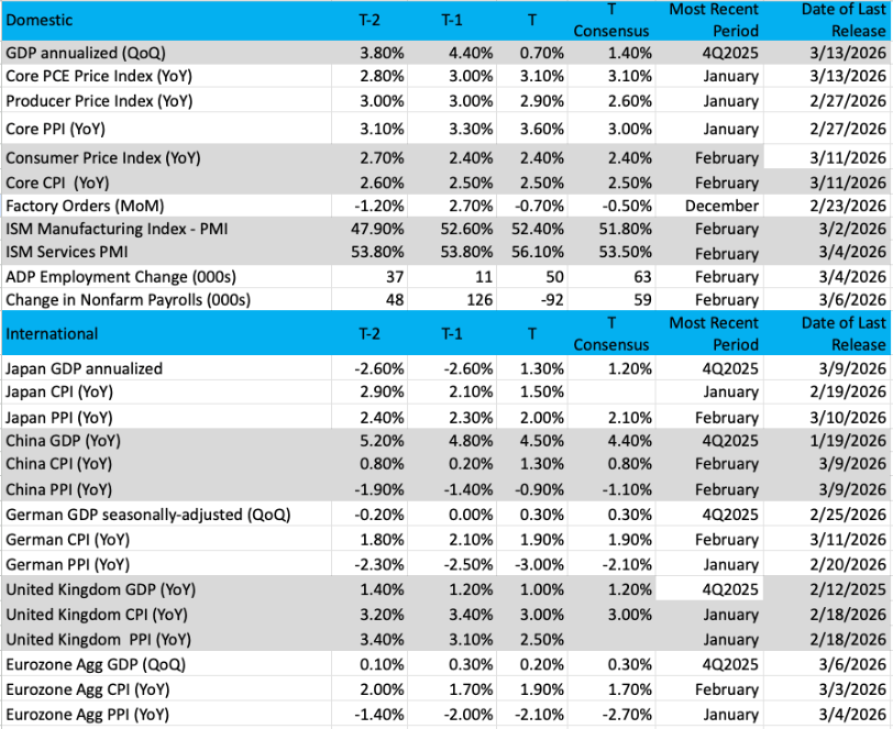 Outside of that, and from an economic and monetary policy perspective, the two main events next week will be the February Producer Price Index report and the Fed’s latest monetary policy meeting. Both of those come on Wednesday, and our thinking is that if weekend signs point to a continued U.S.-Iran conflict, market watchers will note the February PPI data, but be more focused on gas, diesel, jet fuel, and other prices in March and what they are likely to mean for March inflation data.