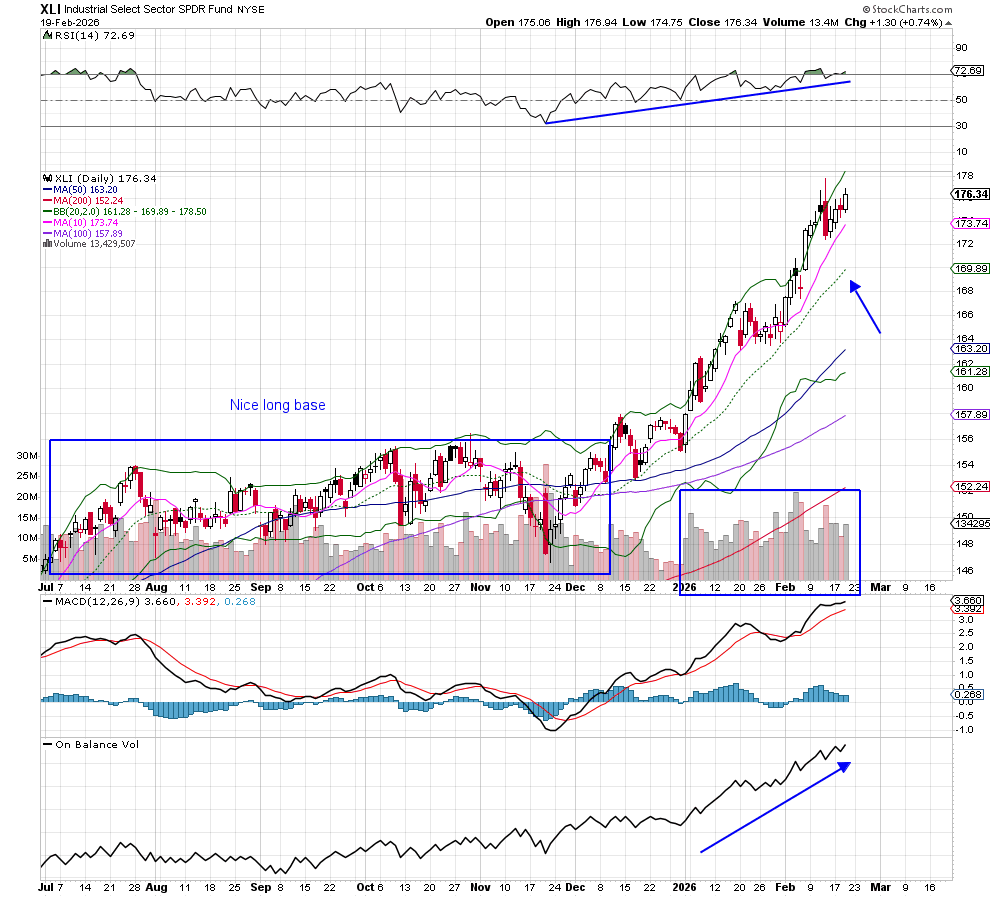 What I find particularly strong is the higher level of volume during the first two months of 2026 (box). This tells us big money is coming after names in the XLI without regard to price, which only means one thing: the big money players believe higher prices are coming, and soon!