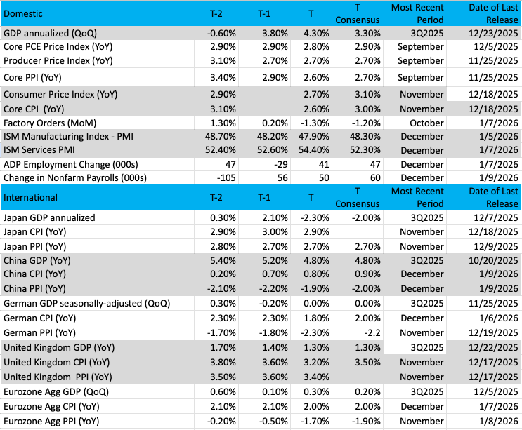 Wednesday was a big data day with ADP’s December Employment Change Report and ISM’s December Services PMI. Looking at those alongside Monday’s December Manufacturing PMI from ISM, it was clear the pace of job growth had remained tepid, but the Services side of the economy perked up as we closed out 2025. Indeed, the Services sector New Orders sub-index came in at 57.9, the highest reading since September 2024.