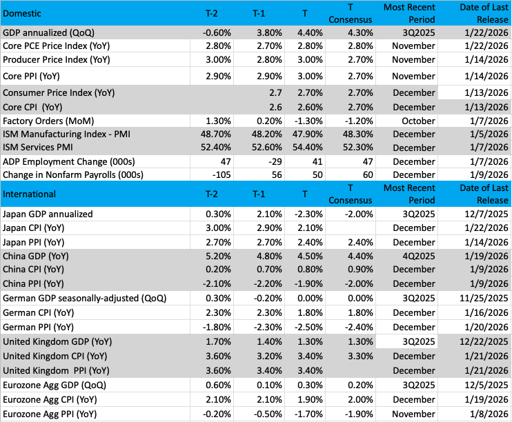 But first things first, we have a modicum of economic data next week, with a few catch-up pieces on the way. Ahead of the Fed’s monetary policy decision on Wednesday afternoon, January 28, there aren’t really any new data points that will likely sway the outcome. After delivering three 25 basis-point rate cuts in the last quarter of 2025, the market does not expect the Fed to deliver another one next week.