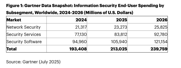 That re-acceleration is tied in part to the growing use of AI in cyberattacks, which is expanding their scope and scale. That helps explain why research firm Gartner upped its estimate of worldwide spending on information security to $213 billion for 2025 yesterday, from $193 billion in 2024.