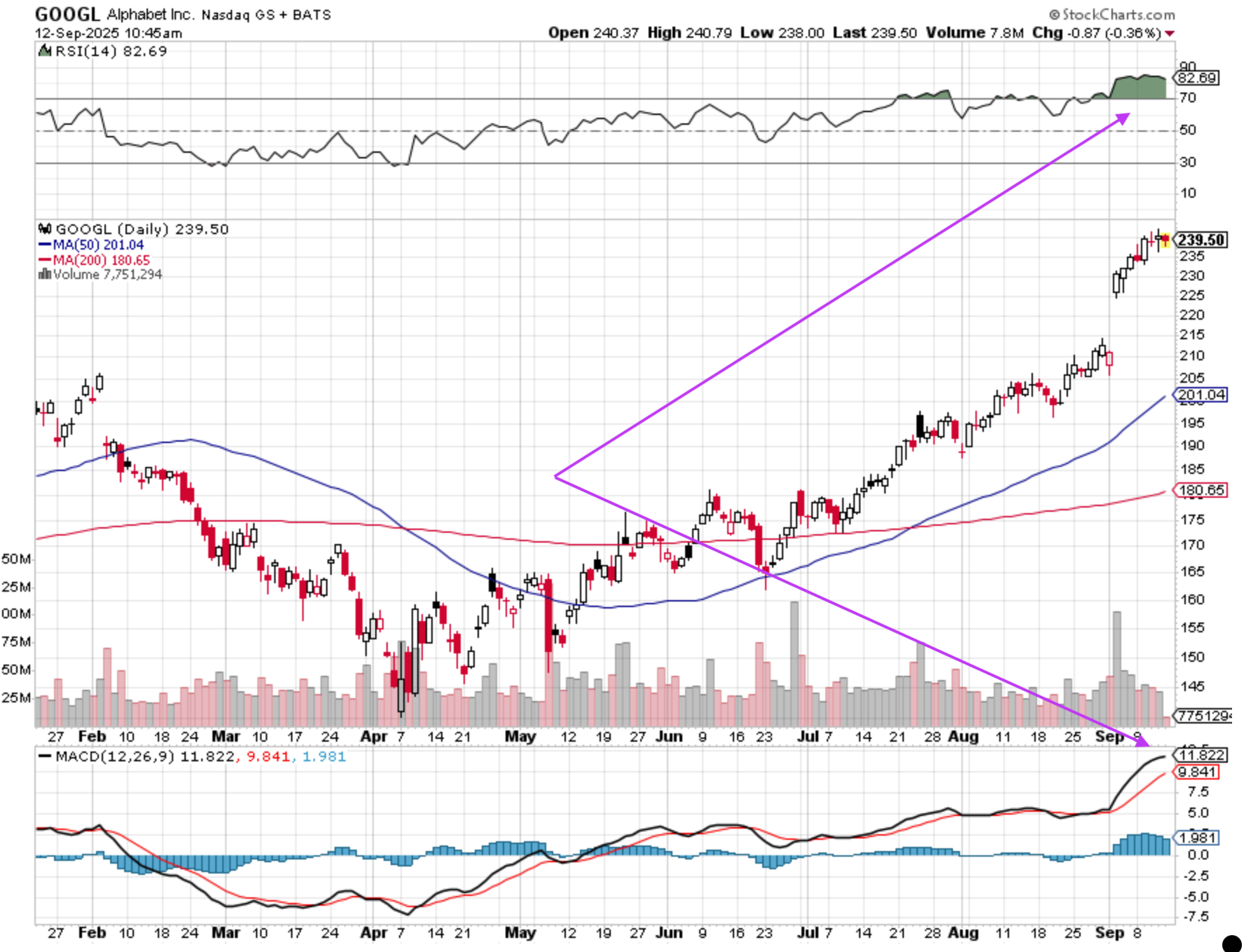 With GOOGL's RSI (relative strength index) flashing north of 80, indicating the shares are deeply overbought, and the stock up more than 47% from late June, we are opting to ring the register once again on GOOGL. We see this small move as a prudent one heading into what could be a “buy the rumor, sell the news” Fed event next week.
