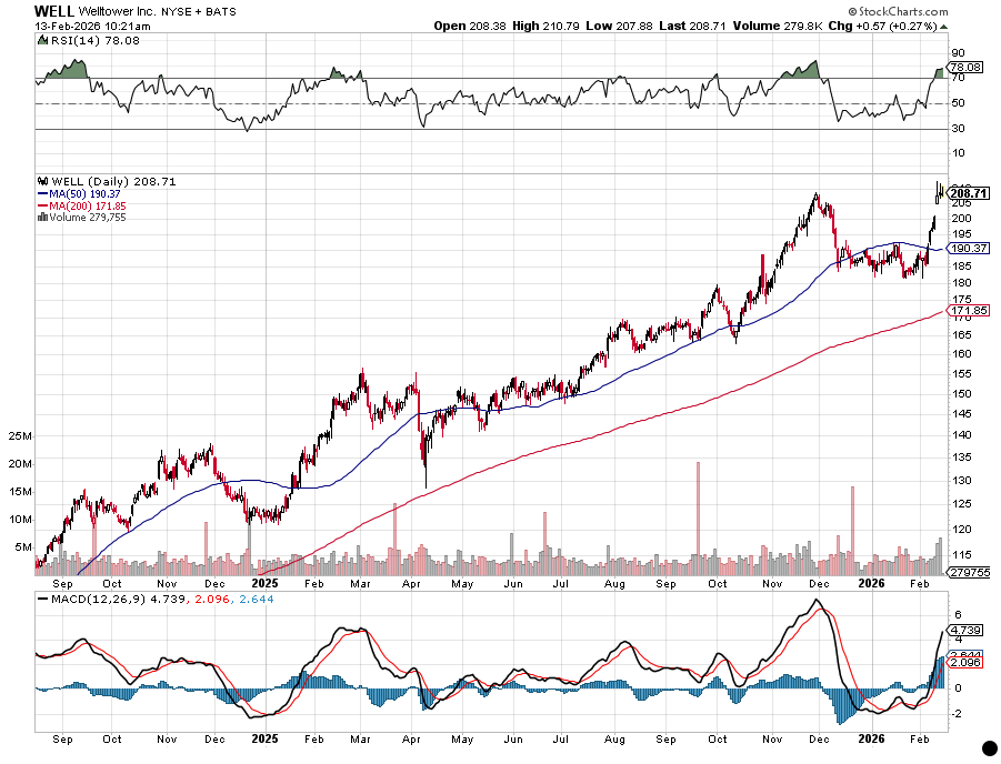 After you receive this Alert, we will sell 110 shares of Welltower (WELL) at or near $209. Following the trade, WELL shares will account for roughly 2.5% of the Pro Portfolio.