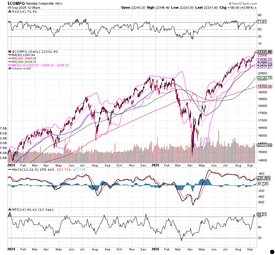 The market melt-up ahead of the Fed’s policy meeting continues, with the Nasdaq Composite inching deeper into overbought territory and the S&P 500 knocking on that door based on its current RSI reading.