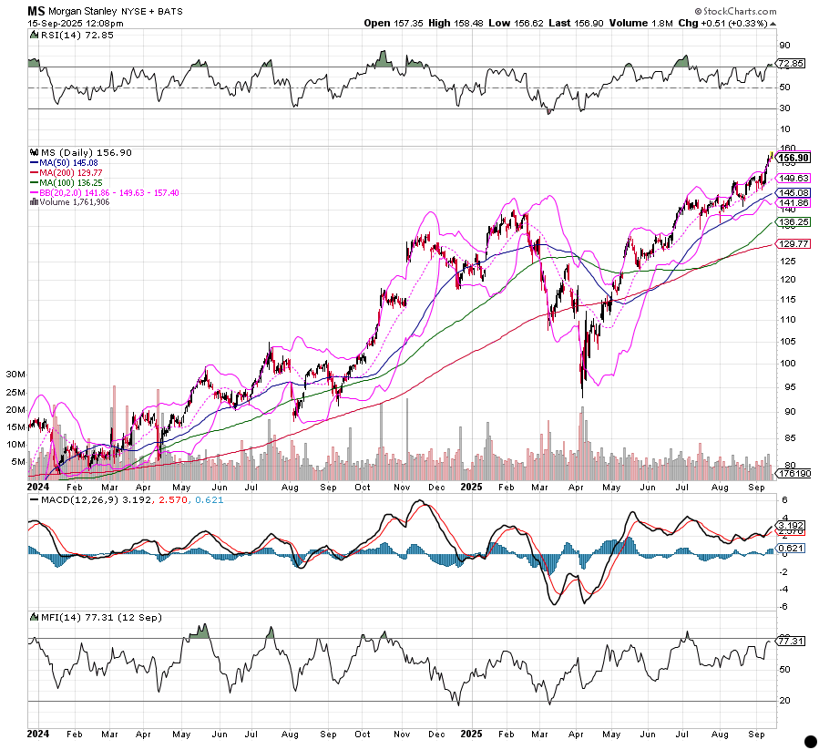 The other position with an RSI above 70 is Morgan Stanley MS, which has benefited from the upswell in IPO activity that should drive the investment banking segment, and the corresponding bottom-line leverage it's known for. What’s interesting is that shares of other big banks with a meaningful investment banking arm, such as Goldman Sachs GS and JPMorgan Chase JPM, are not yet overbought. They are close, but so far, their RSI levels remain below 70.