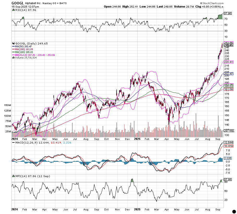 When we look at the Pro Portfolio’s holdings and their current RSI readings, only two are above 70, which signals an overbought condition. The first, as you can see below, is Alphabet GOOGL, and that condition has only intensified after we took some very profitable chips off the table last week.