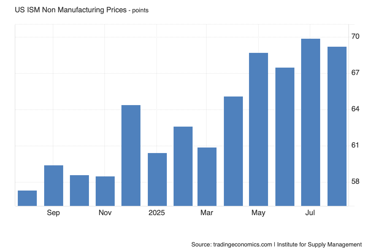 That brings us to today’s back-to-back August Services PMI reports from ISM and S&P, which shows inflation pressures continued to rise in August.