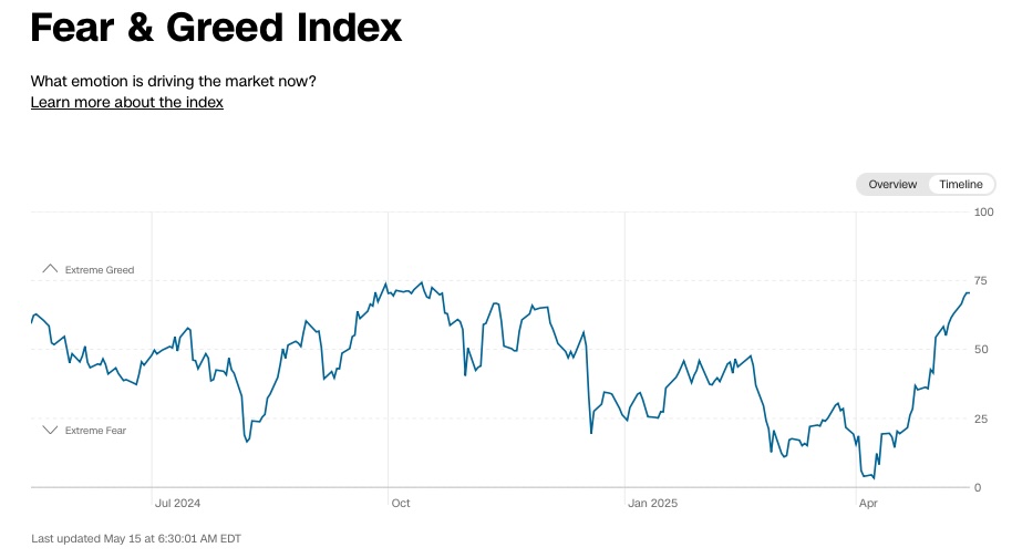 And with those conditions, it should come as little surprise that the Fear & Greed Index is back deep in “Greed” territory.
