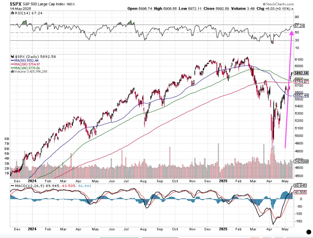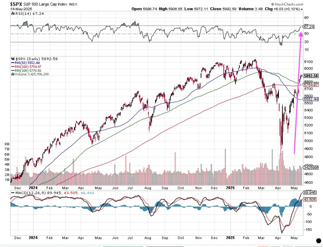 We all know the headline drama around tariffs and the economy that hit the market in late March and early April. As those fears and concerns have been dialed back, and progress on trade deals emerged, the stock market made quick work of rocketing higher back toward late February-early March levels. However, those welcome developments now have the S&P 500 careening toward once again being overbought.