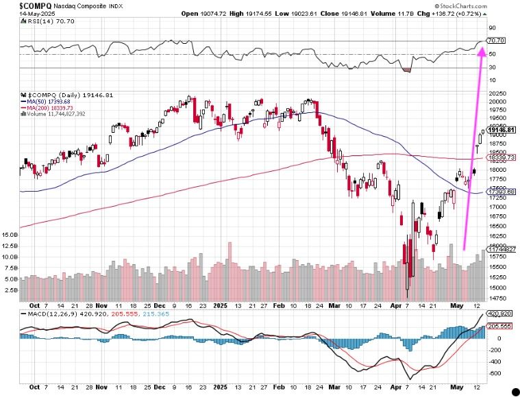 The Nasdaq Composite? We're already there based on its relative strength index (RSI) level of 70.70 with last night’s market close.