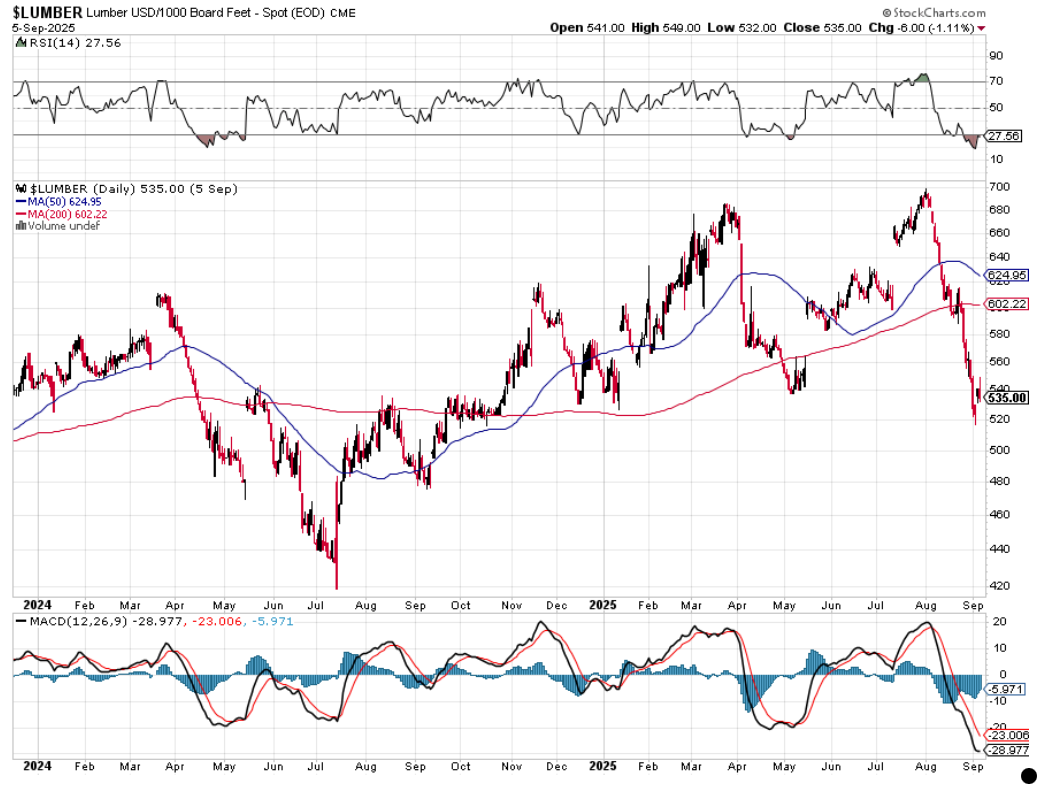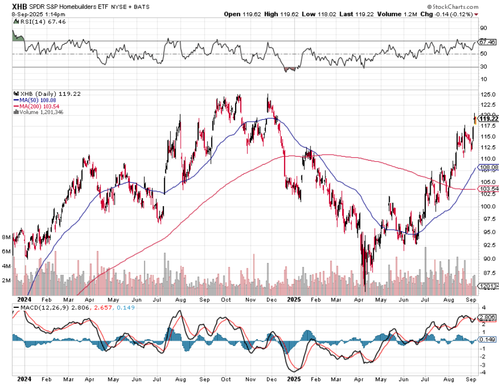 If the Fed signals it still sees two rate cuts for this year and reaffirms expectations for rate cuts in 2026; if that nudges mortgage rates even lower leading new mortgage originations to perk up; and we see a rebound in copper and lumber prices, that would be a time to revisit homebuilders, such as DR Horton DHI, and related companies like Builders FirstSource BLDR, Eagle Materials EXP, Sherwin-Williams SHW, or Masco MAS.