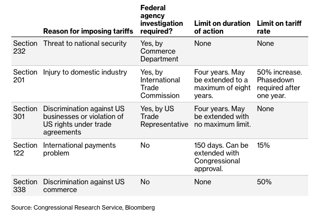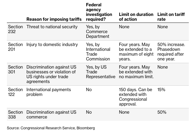 If it is one of those five potential avenues that Trump utilizes, given some of their limitations, there’s less leeway for the president to impose tariffs at a whim immediately and set the rates as high as he chooses.