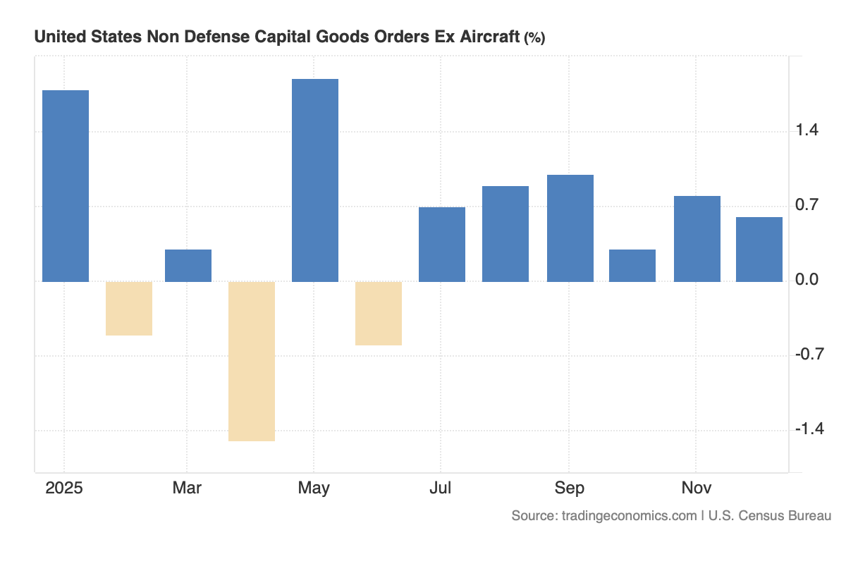 And when we look at the December non-defense capital goods orders ex aircraft, a proxy for business spending, and the January uptick in manufacturing production, it looks like that part of the economy is perking up. We’ll look for confirmation of that in Friday’s Flash PMI report, and if that is what we see, it would suggest the U.S. economy continues to hum.