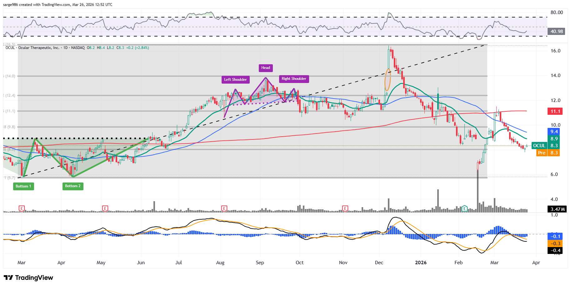 I will purchase 100 shares of OCUL at or close to the last sale of $8.30.