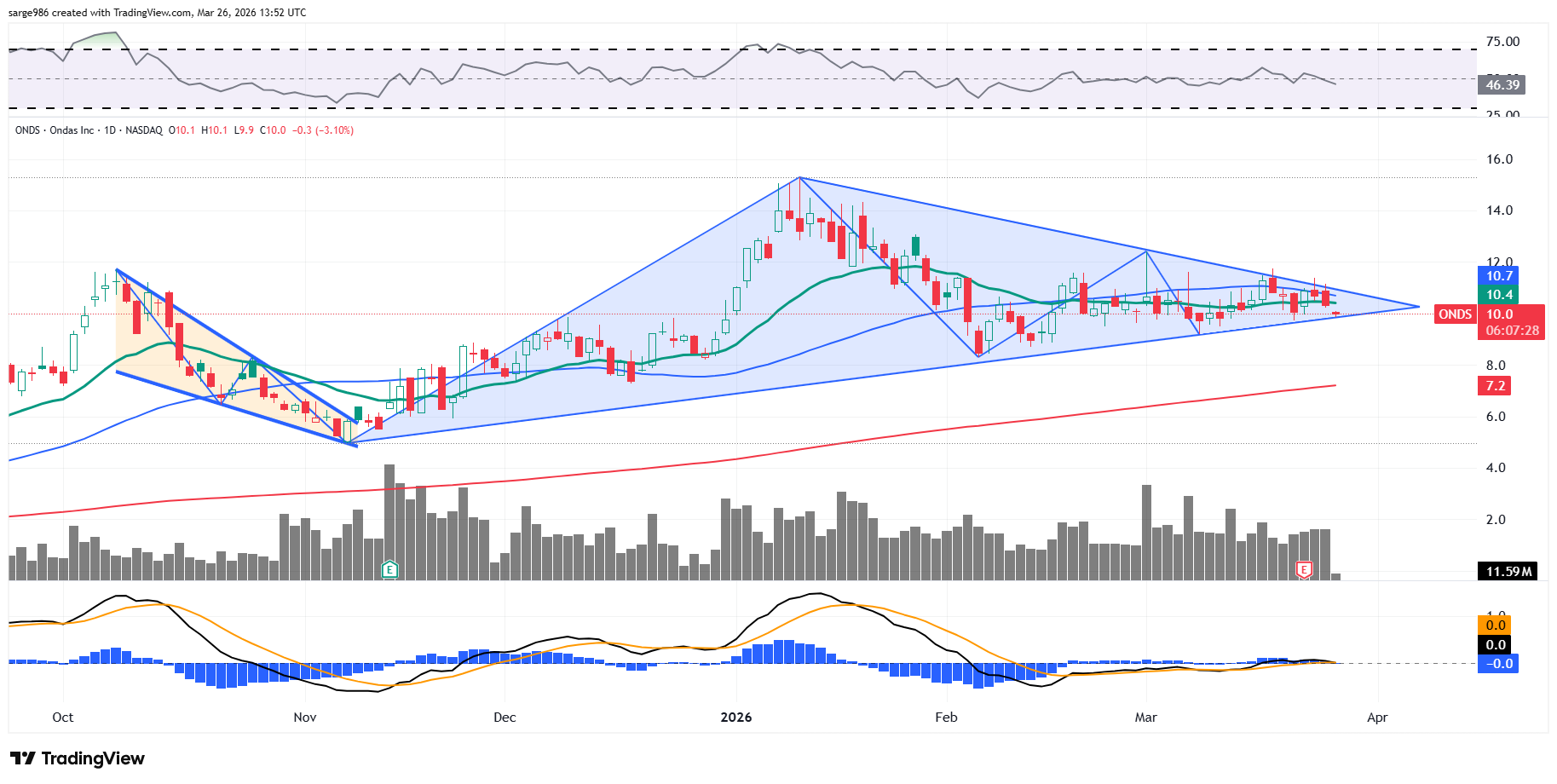 I will purchase 100 shares of ONDS at or close to the last sale of $9.94.