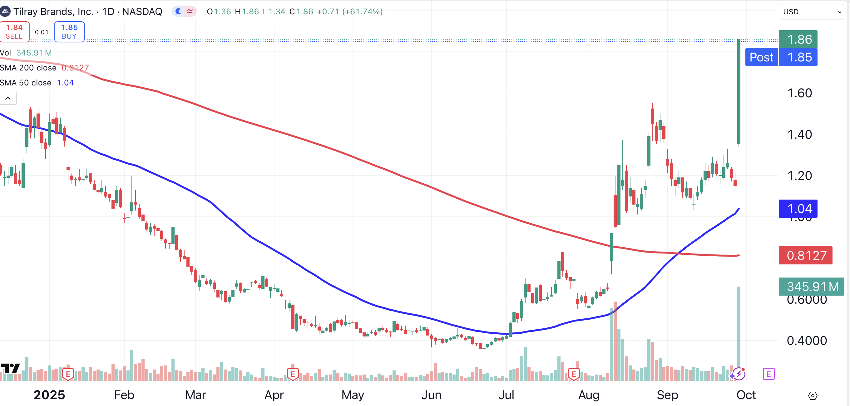 For example, shares of Tilray Brands, Inc (TLRY) climbed by over 60% on Monday. Despite that gain, New York-based Tilray is still down by 27% since I referred to the stock as "toast" two years ago.