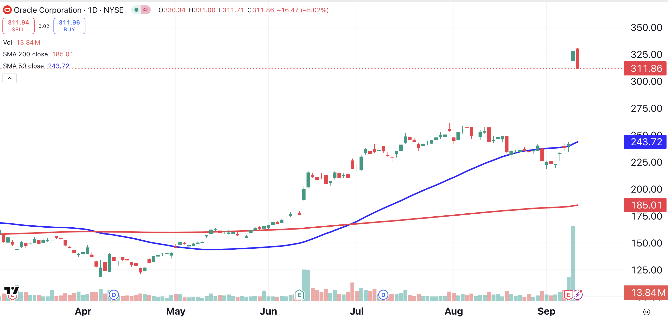 Oracle’s volume wasn’t just high — it was extraordinarily high. I went through 10 years of data, and I couldn’t find a higher volume day for this stock.