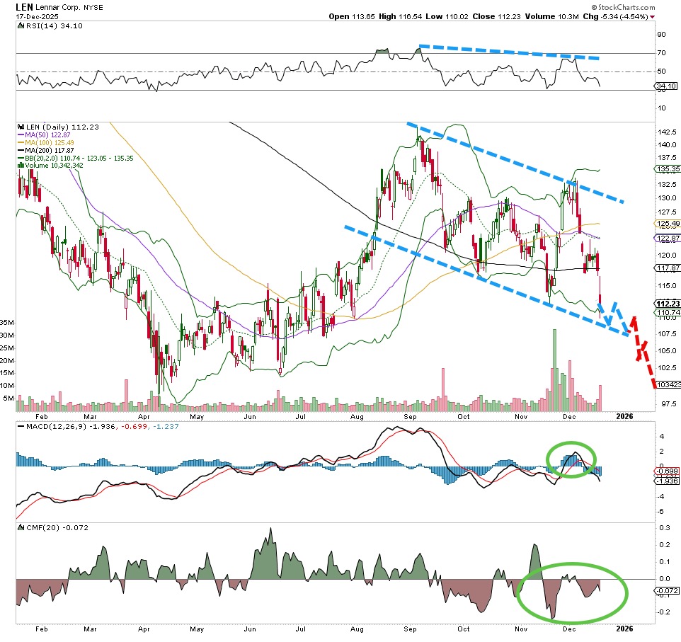 But homebuilding is different, and as the Lennar (LEN) chart shows, there is some difficulty when the trend is bearish.