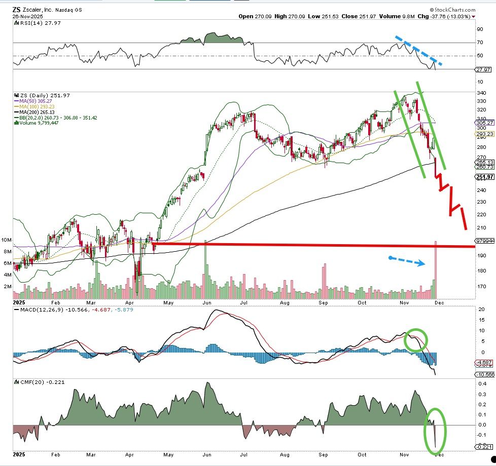 Certainly the recent selling in Zscaler (ZS) was a sign of things to come, but who knew the stock would act so poorly after earnings. The downtrend line was in place, a series of lower highs and lower lows. So when the stock fell sharply on heavy volume this past week it was no surprise.