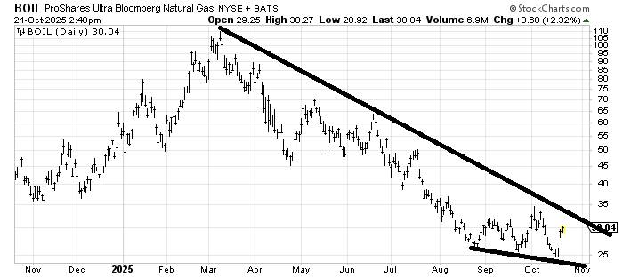 BOIL is an ETF to be long natural gas. I want to love the chart, but I think 35 is going to be difficult to get through. A few months of sideways in this 25-35 area would make the chart much more enticing to me. For now, I’d call it a trading stock. Conceptually, this ought to be a good area (energy)