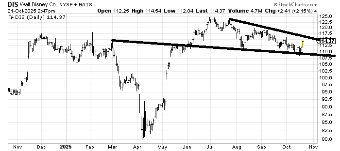 I am inclined to like Disney (DIS) , but I think it will take a lot to eat through resistance. In other words, I can see it getting to 117-118, then backing off again, then up to 120, then backing off again, and so on. So, you might need quite a bit of patience because remember, these group rotations are fits and starts.