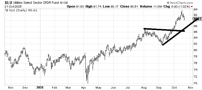 Last week, I said I thought the Utes were vulnerable, and now, along with the other hot trades over the last six weeks, the Utes have come down. Here, too, I need a pattern to set up for me to like them again. I am eyeing something down in the 86-88 area as the next spot, but that ought to be just a bounce. I will wait for the pattern again.