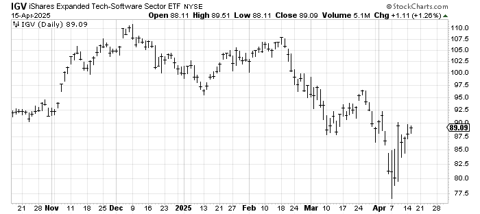 Here’s the real issue: we looked at the IGV the other day. I noted that so few stocks had managed to get to resistance, let alone into it yet IGV had. And while it has been up for the last two days now, it hasn’t made a whit of progress.