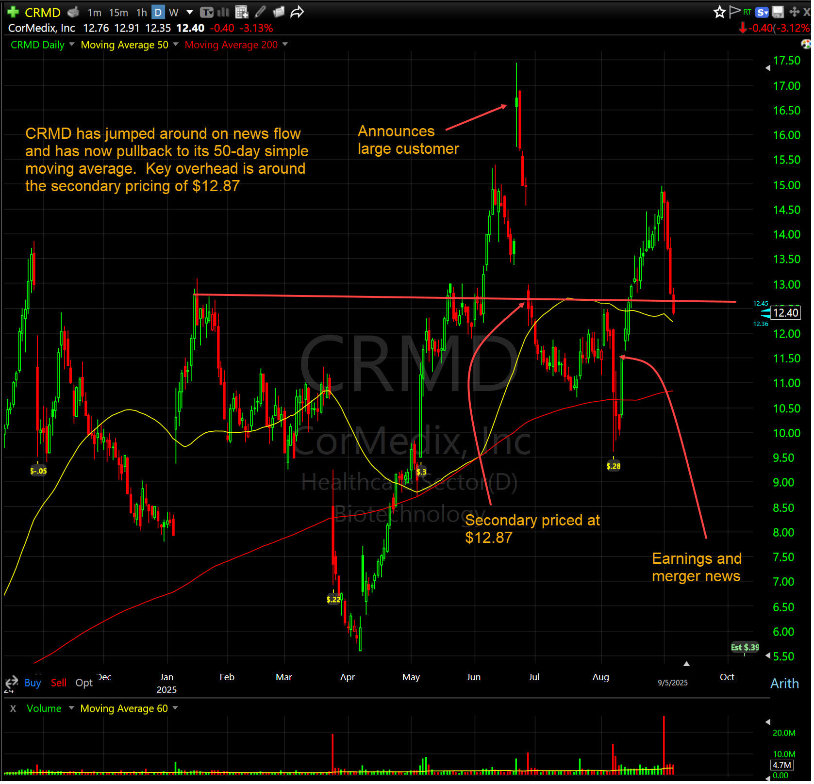 I have a position in CRMD and will be trading it aggressively as it develops.