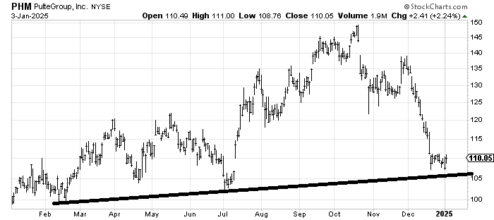 Pulte PHM and the other homebuilders have become a hated group. Notice this is yet another stock that peaked in October but it is also another chart that seems to have found an area of a low on that FOMC day. One more trip down looks to me as if it would find support in that 105-ish area. I think it can rally to 120, especially if we get that set up I so desire!
