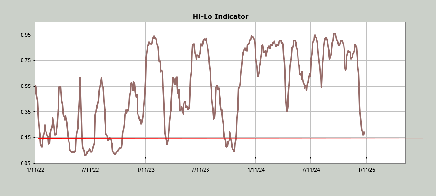 That means if the market opted to take one more slide in the next week or so almost all the intermediate term indicators would be firmly oversold. That also means that the sentiment which as I noted came off the bullish boil as of Thursday might even get to the point I would call it bearish.