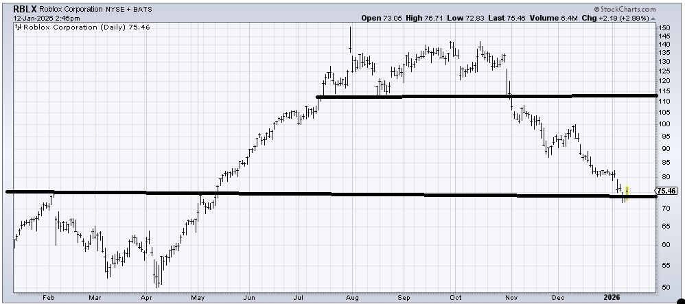 Roblox (RBLX) is certainly trying to hold support. It’s early but it’s oversold so might be worth a shot if you have some patience.