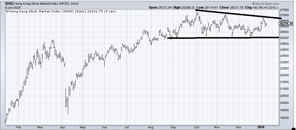 I have been a fan of (KWEB) , (BABA) and (BIDU) , so the question is about the Hang Seng (HSI) and can it breakout? Let me say this: If it can stay over 26,000 then I think he has a good chance at it. If it breaks 26,000, then I’ll stick with the trading range.