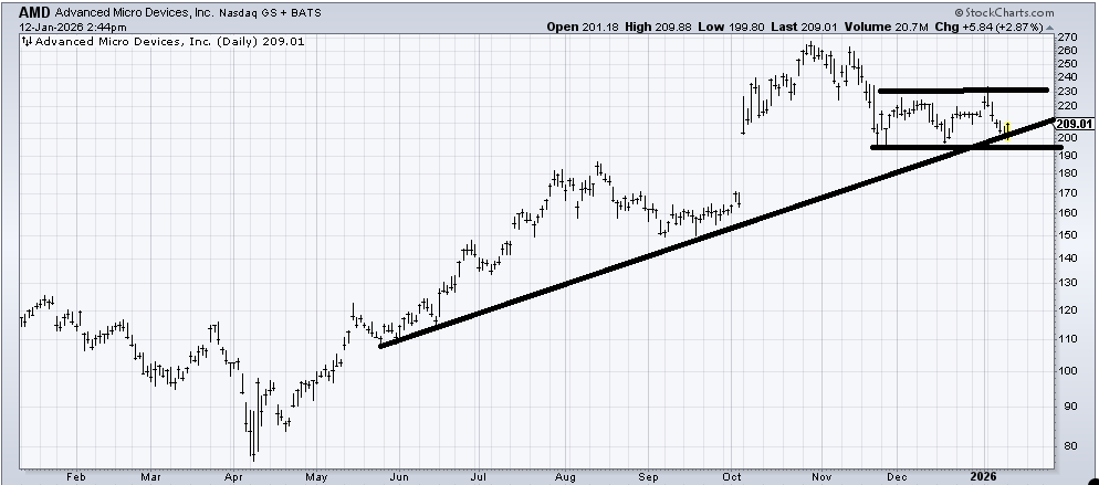 I liked the Advanced Micro Devices (AMD) chart a few weeks ago, the last time it was down in this area and the semis were oversold. Or, maybe I should say, I thought it could rally to resistance. And it did so.