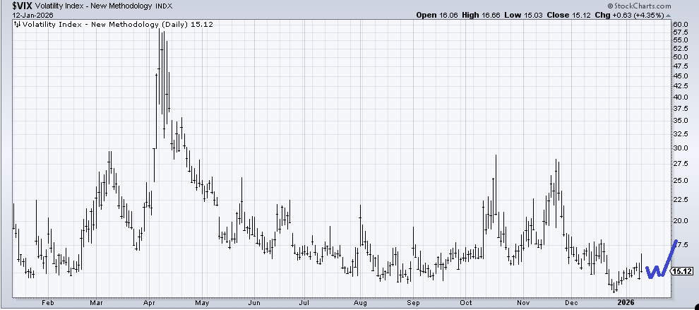Hey, we got some volatility. Seriously, I got a tiny little spike in the VIX. What I would love to see is something akin to what I have drawn in blue. Because, while I know I have said this for a month now, this looks like a bottoming chart to me.