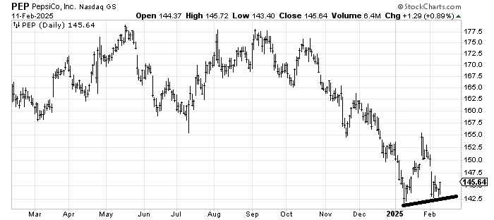 Everyone seems quite excited over the staples today. Probably because Coke KO gapped up (we looked at KO on Sunday evening). So, I would just remind you that I still think Pepsi PEP is worth a shot here as long as it stays over those twin lows.