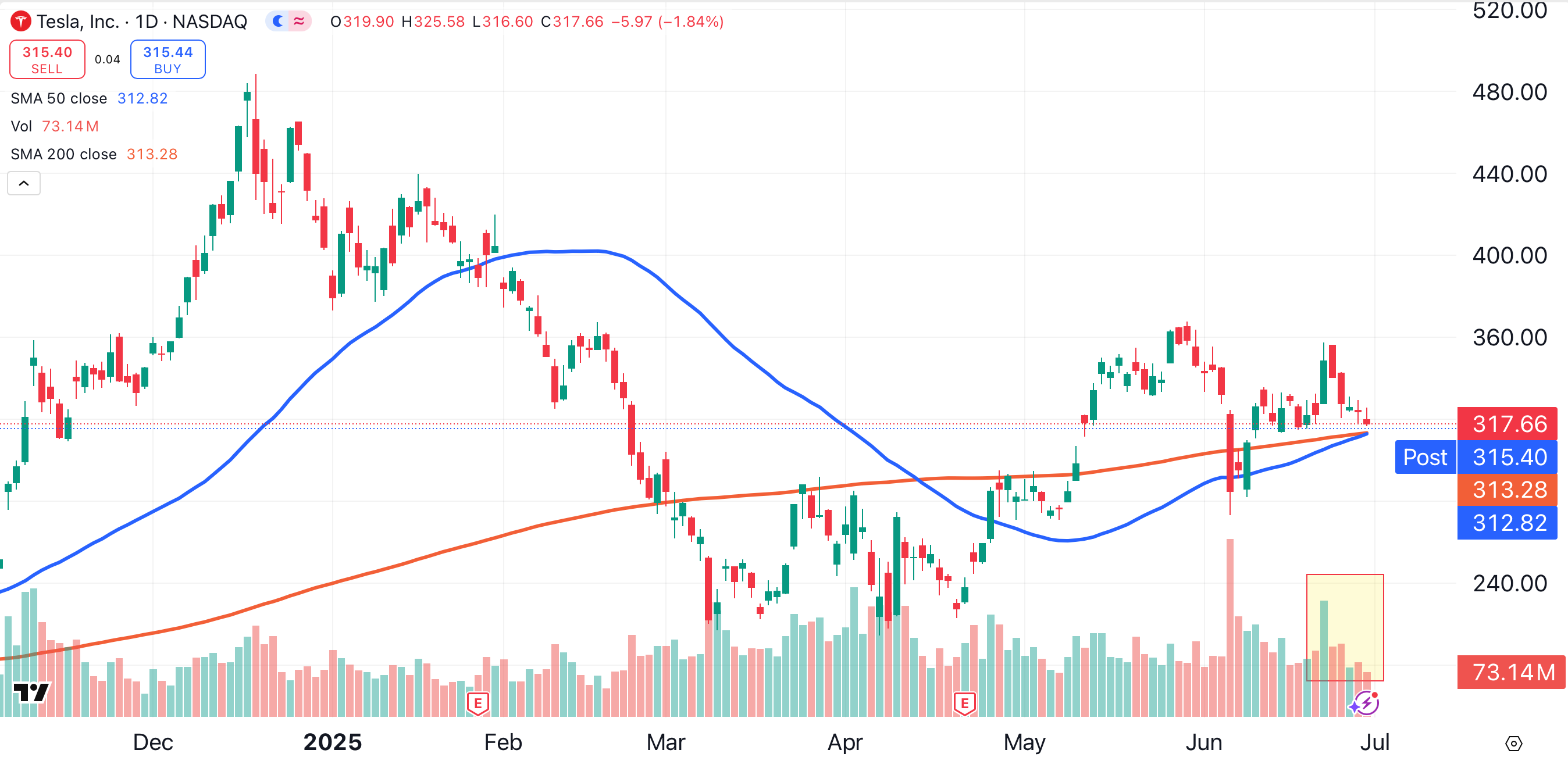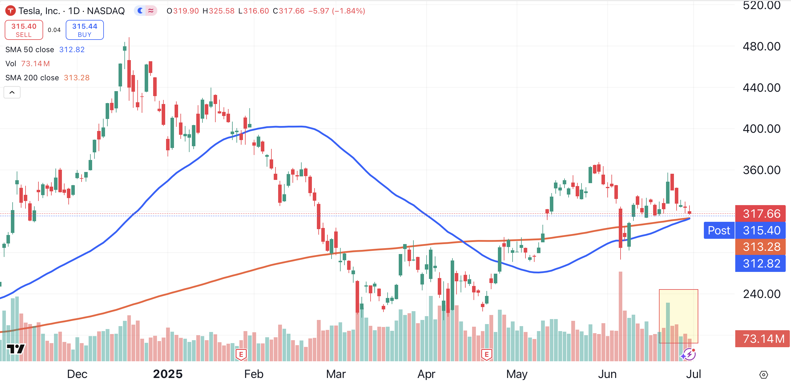 The first half of 2025 hasn’t been kind to Tesla. The stock is down 16.25% year-to-date, and has fallen 10.77% over the past five trading days.