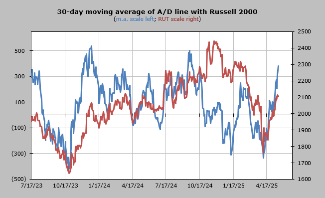 The 30-day moving average of the advance/decline line is discussed above.