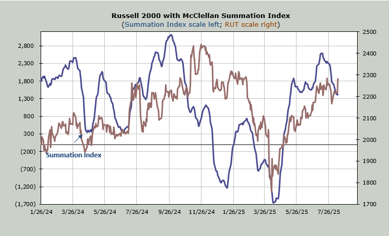 None of the indicators changed except the McClellan Summation Index stopped going down. Now it needs another good day of breadth to get it to turn back up. The chart is below.