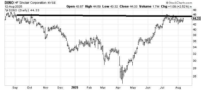 HF Sinclair DINO which has one of the best ticker symbols has been digesting its rally nicely. I think I am a little early but as long as it doesn’t break 42 this has my interest.