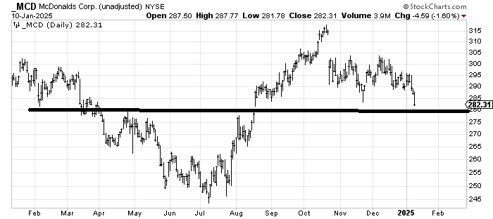 McDonald’s MCD got taken to the woodshed last week and looks terrible but it is oversold, or close to it. If you want to trade this then something between 275-280 looks like the spot to take a stab as there is support as well as a gap fill. But it’s a trade, that’s it.