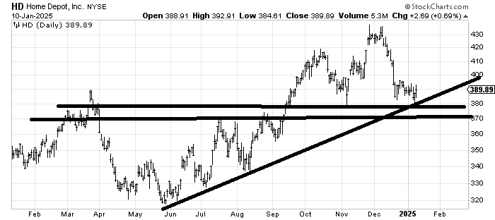 Home Depot HD has bounced off the top of support twice. The risk/reward seems decent here.