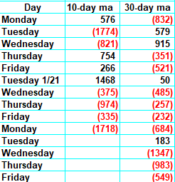 But the math behind it says we need a few more down days to get to a really good oversold reading. You can see the math in the table below. As a reminder, we want to see a long string of red numbers to be dropped for a really good oversold reading. We’ve been doing a good job of filling them in but the longer the string the better the oversold condition.