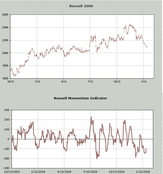 Now let’s take a look at the Russell Momentum Indicator. I have done the same with Nasdaq and the result is the same. What I do here is plug in lower closing prices for the index to determine the point where the Momentum Indicator stops going down. Here I have taken the Russell down by approximately 100 points over the next week or so and the indicator not only stops going down, it turns upward on January 21st.