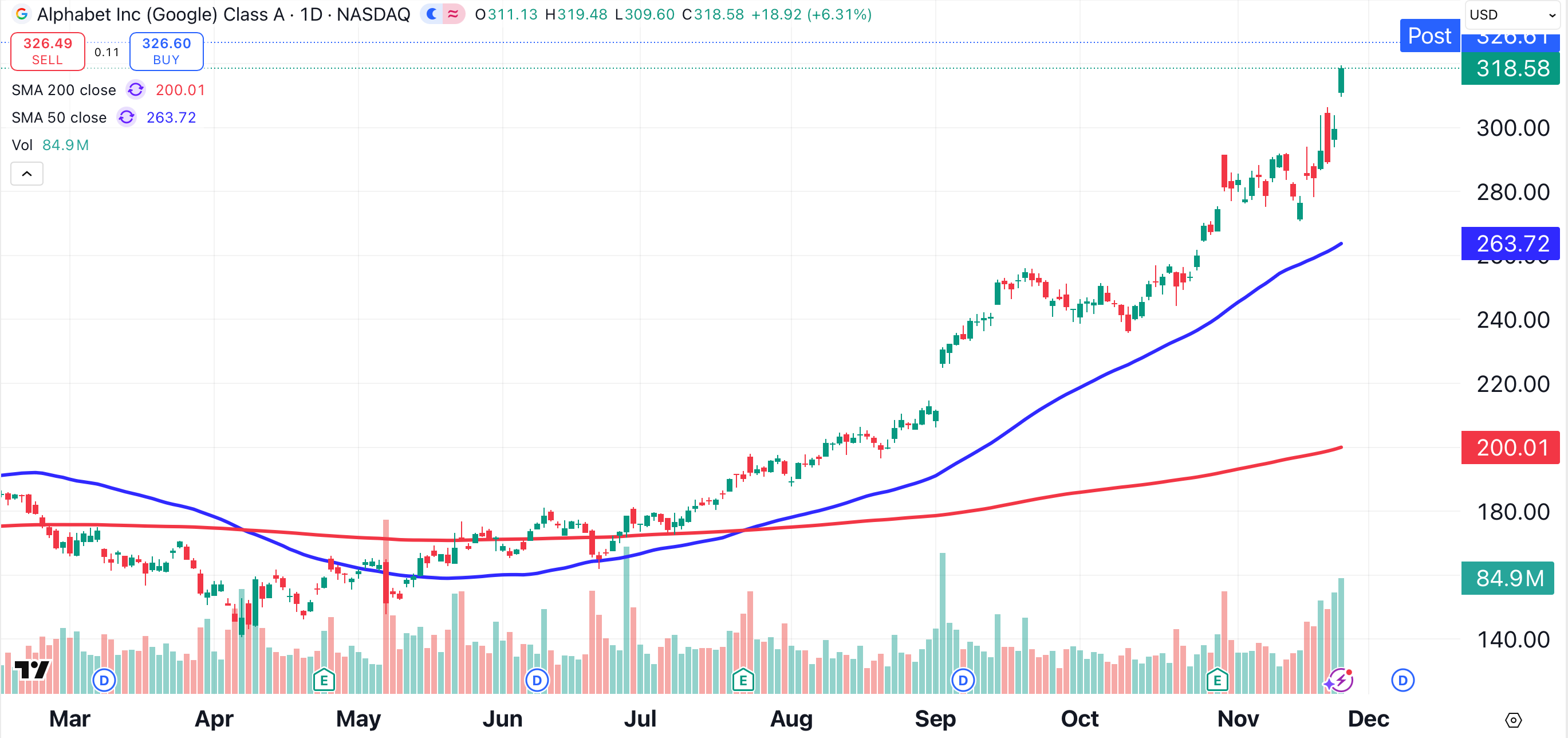 Alphabet (GOOG) , which also closed at an all-time high on Monday, is pulling the indexes higher. Alphabet has now gained 67% year-to-date.