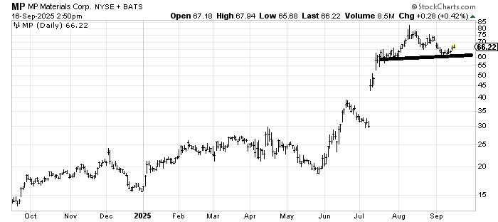 Quite frankly, I would love MP Materials MP to come down to 50 and fill that gap, but barring that, I would just use 60 as a stop area.