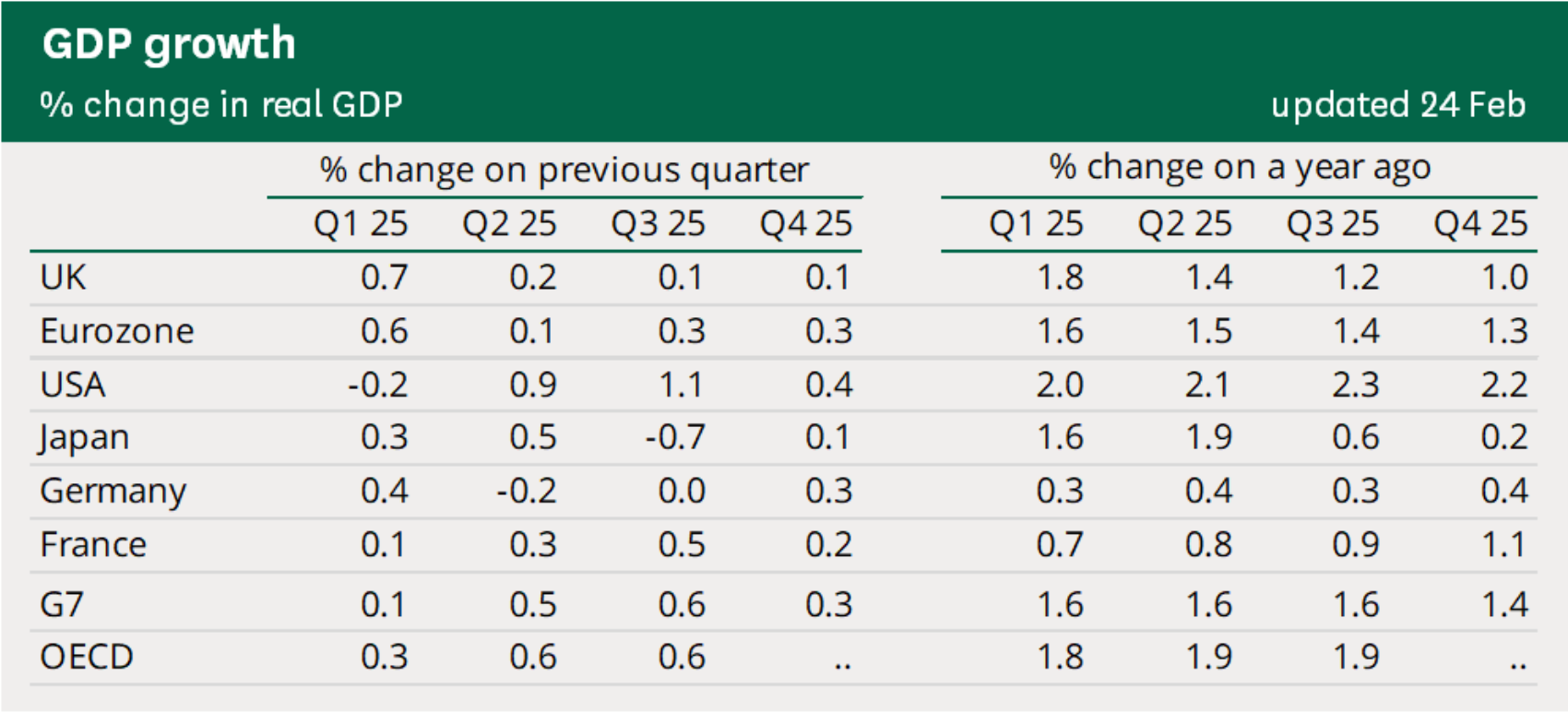 That’s a good thing. According to the OECD, the U.S. is the fastest-growing of the G7 economies, both on a quarterly (Q4 2025) and an annual basis: