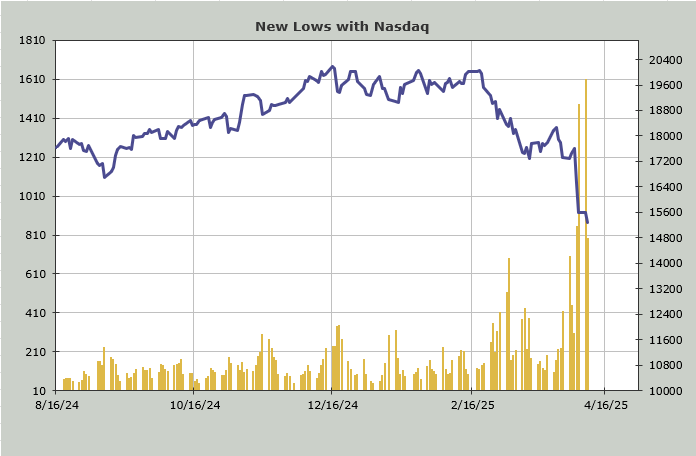 Nasdaq’s new lows on Monday were 1611, and today they were 790. The NYSE had 1162 new lows on Monday vs. Tuesday at 585.