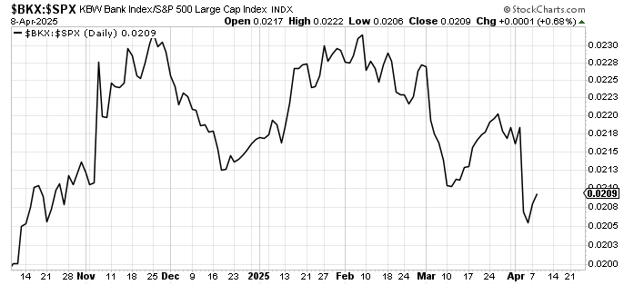Here’s something else I am watching: the banks outperformed the S&P today. They report earnings at the end of the week, so I don’t want to trade them in advance, but it’s typically a good sign for a bounce when they outperform. Notice they did so off the mid-March oversold condition.