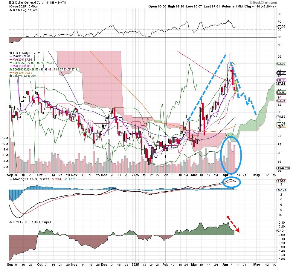 Some better-than-feared earnings recently from Dollar General DG brought a nice relief rally for this stock but right up to the 200-day moving average. That resistance point stopped the stock dead in its tracks, and while it did exceed that level for a few days the longer-term trend remains down.