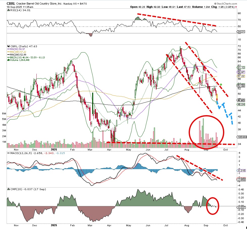 There's the huge controversy recently surrounding a logo change for long-time restaurant favorite Cracker Barrel CBRL. Then there's the chart.